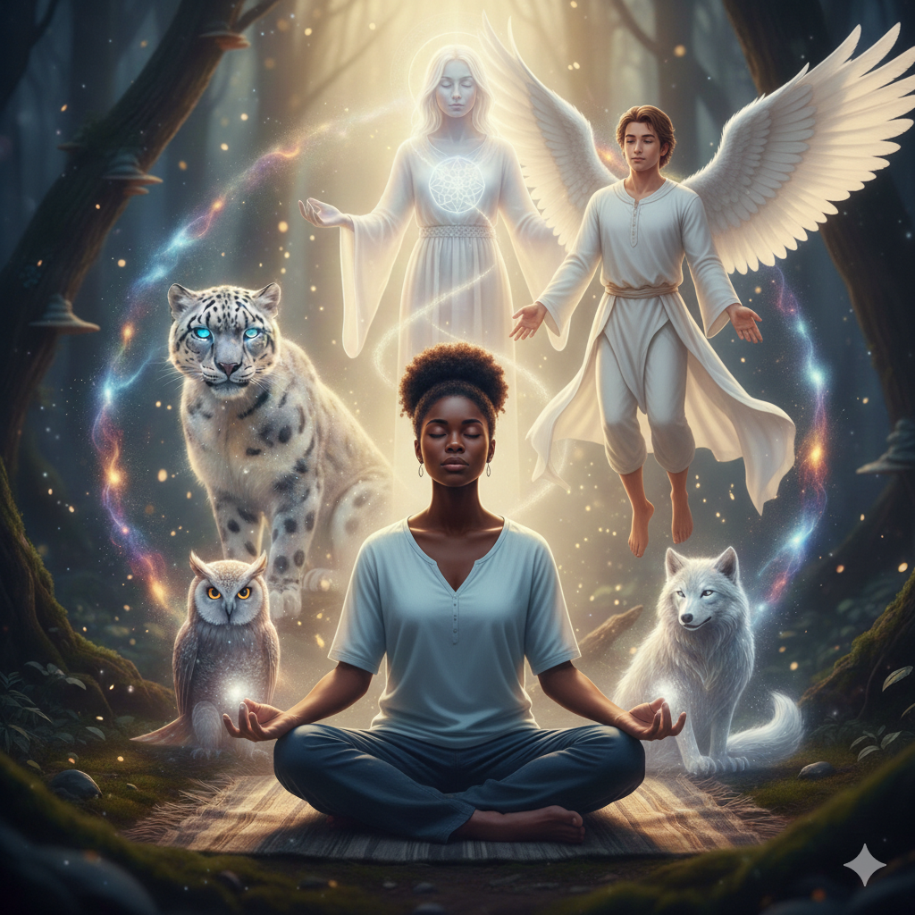 Here, we invite your Guardian Angels to offer their peace, your Spirit Guides to offer their wisdom, and your Animal Totems to share their primal strength and medicine.